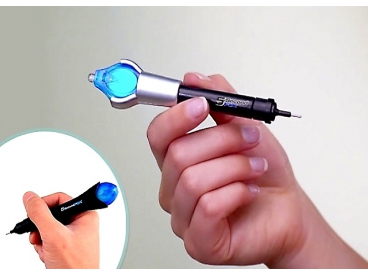 Ovo je moj omiljeni alat jer pravim figurice od drveta koje imaju jako puno sitnih delova, pošto su lako lomljive dešava se da se u transportu polomi neki deo. To nije problem jer uvek nosim laser olovku koja ponovo spaja polomljeni deo sa figurom, ništa se ne vidi i što je najvažnije nema lepka pa nema ni mrlja