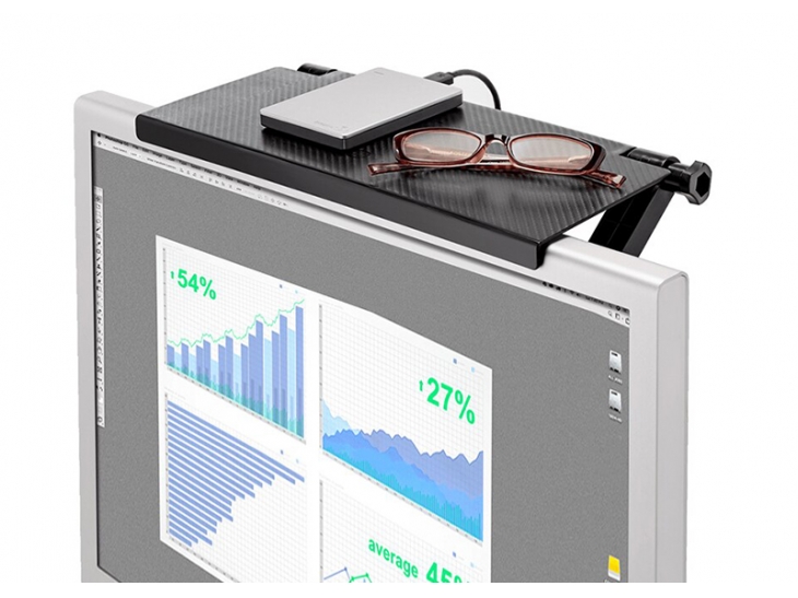 Više nećete morati da bušite zidove kako biste imali gde da stavite potrebne sitnice niti ćete ih gubiti po sobi/kancelariji – sada imate kao rešenje ovu korisnu policu koja se kači na gornji deo TV-a ili monitora.