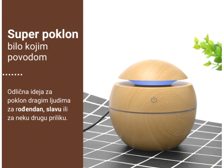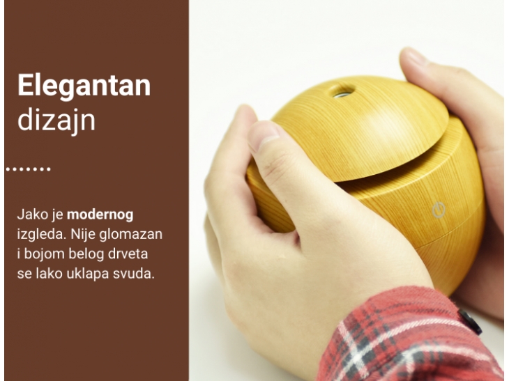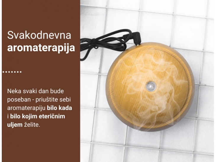 Neka vazduh u prostoriji u kojoj boravite bude čist, zdrav i prijatan za udisanje. Aroma difuzer će mu pružiti potrebnu vlažnost, eterična ulja dati predivan miris, a vas opustiti/razbuditi (u zavisnosti koje ulje sipate), učiniti da se osećate bolje i budete raspoloženiji.