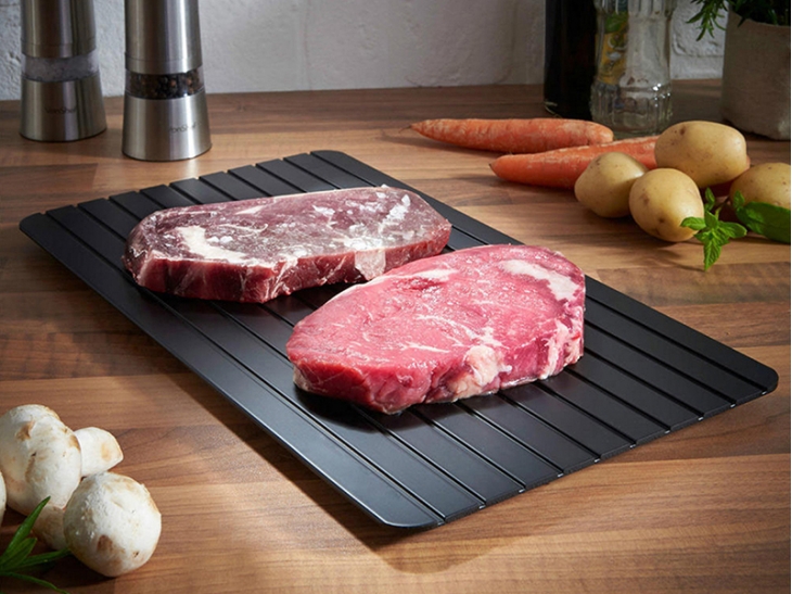 Pored toga što je možete koristiti za meso, magična ploča za odmrzavanje pogodna je i za drugu vrstu hrane. Ukoliko imate običaj da zamrznete pripremljene obroke, poslastice ili pecivo, više nećete biti u obavezi da ih zamrzivača vadite ranije, kako bi bili spremni na vreme. Dakle, sve što poželite, biće odmrznuto za najviše pola sata. Odmrzava piletinu za 12 minuta, svinjetinu i teletinu za 30, a mleveno meso za samo 15 minuta.