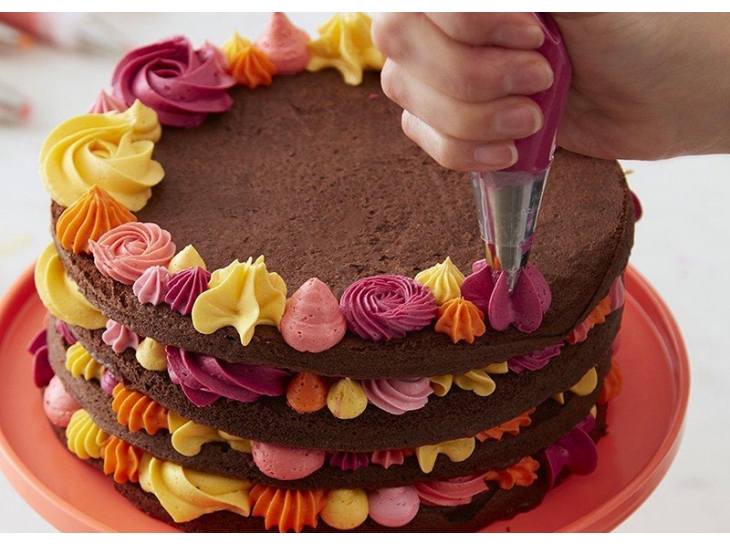 Obični špricevi za torte zahtevaju stalno otvaranje i dodavanje fila pa se često desi da umažete ruke ili prospete fil sa strane. Sada je tome došao kraj! Kada koristite ovaj specijalni set za dekorisanje poslastica, neće biti nereda i prljanja. U silikonski deo seta staje dovoljno fila da ukrasite mnogo kolača i veliku tortu, nakon čega će kuhinja ostati blistava i čista.