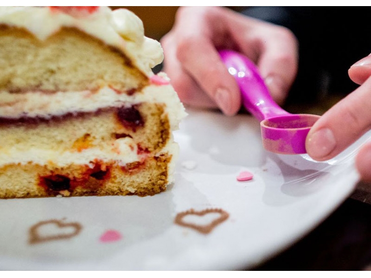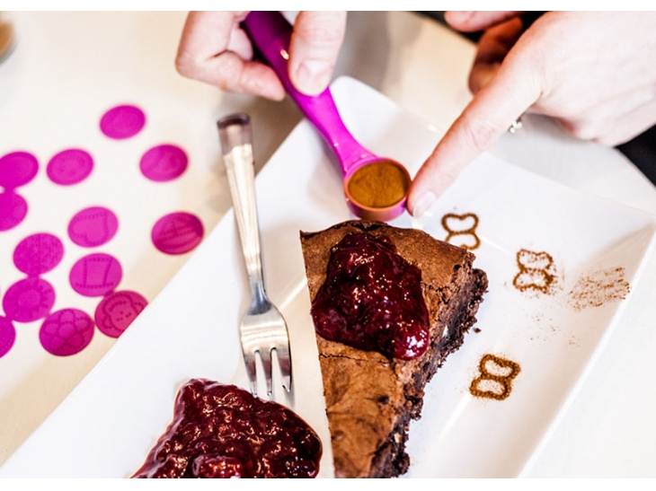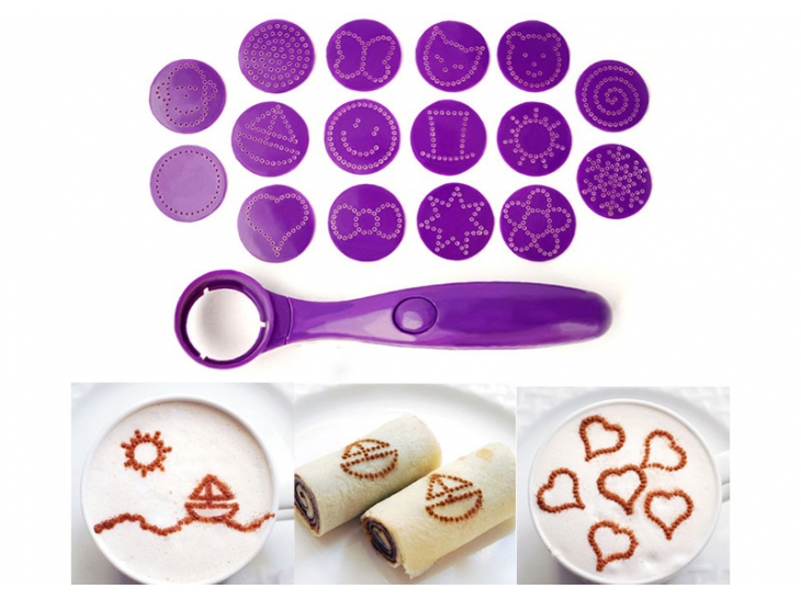 Ukrašavanje je neverovatno sa ovom kašičicom: ubacite šablon koji želite, sipate na njega npr. kakao, stavite kašičicu iznad kafe, kolača, torte ili nekog drugog pića/obroka koji želite da ukrasite.