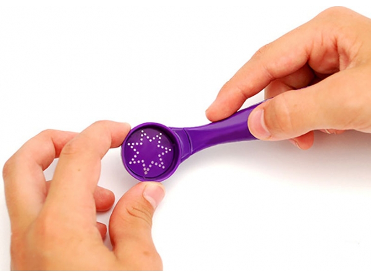 Sa kašičicom se dobija čak 16 zanimljivih šablona sa kojima će i omraženo povrće postati voljeno jelo. Predlozi za sladak „materijal": kakao, prah šećer, cimet, a za slane obroke: kari, aleva paprika, začinsko bilje.
