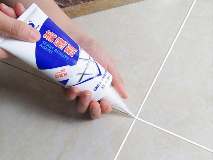 Sanitarni gel u beloj boji za popunjavanje fugni između pločica.