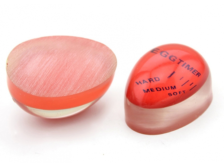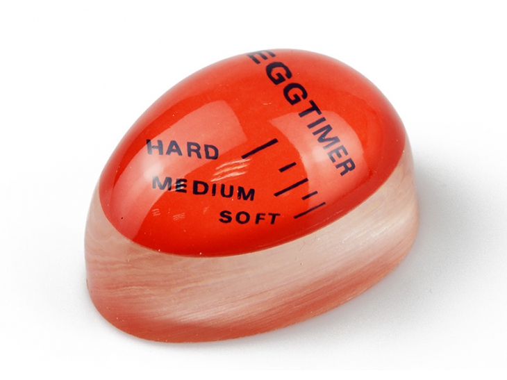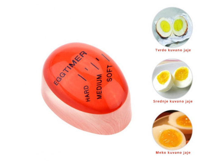 Ovaj fantastični tajmer za jaja izrađen je od plastike koja je 100% otporna na visoku temperaturu. Radi tako što absorbuje toplotu i na osnovu toga menja boju, tako da nije važno koliko vaša ringla brzo zagreva niti da li ste ga ubacili u hladnu ili toplu vodu. On će uvek znati kada je dosta! Kada se tajmer zagreje, crvena podloga će promeniti boju do jedne od tri crte koje su naznačene na tajmeru i koje označavaju tvrdoću jajeta: meko, srednje ili tvrdo kuvano. A kada dostigne željenu tvrdoću, izvadite svoja savršeno skuvana jaja i uživajte u ukusu kakvom ste želeli.