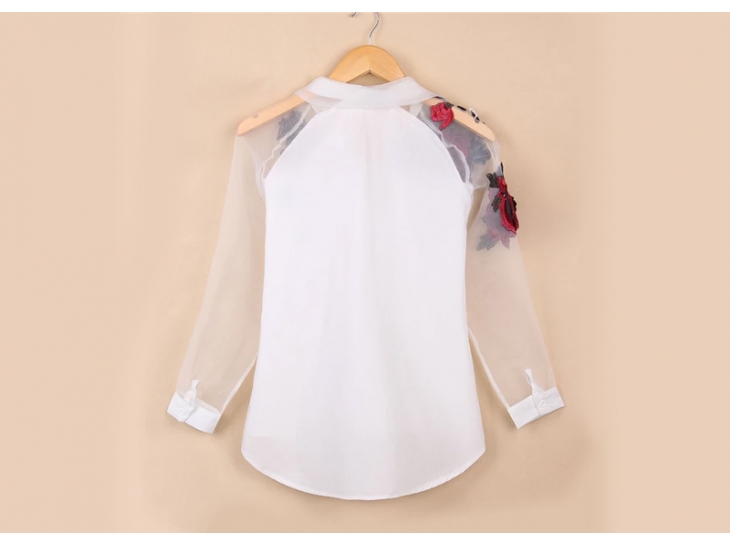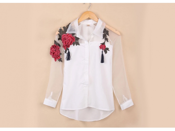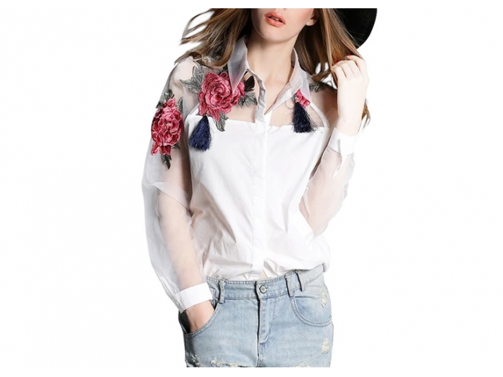 Nekad je dovoljno samo jedan cvetni element na odeći da ona dobije potpuno drugačiji izgled kao što je ova bela košulja sa retro vezenim cvećem u kojoj ćete delovati jako moderno i stilizovano.