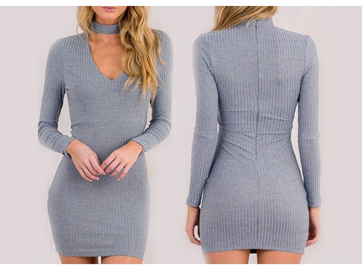 Ova haljina dostupna je u crnoj i sivoj boji, a fantastična je jer ima elegantnu traku od istog materijala koja ide oko vrata, pa zamenjuje klasičan nakit.