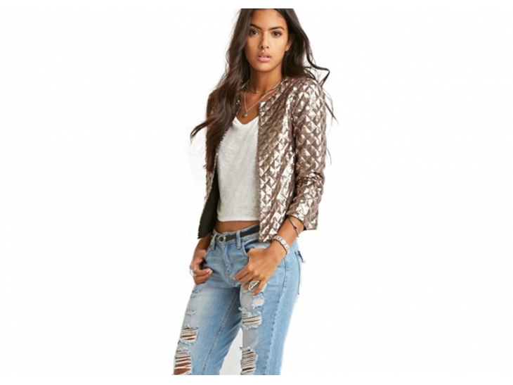 • Zlatna jakna i skinny jeans je odličan spoj ako želiš da izgledaš dobro. Samo je važno da one budu malo dublje da bi se postigla ravnoteža sa kratkom jaknom.