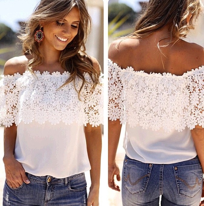 Ova majica je pun pogodak za one devojke koje žele da nose nešto otvorenije majice, ali koje bi ipak da prikriju ruke čijom oblikovanošću nisu zadovoljne. Čipkasti cvetovi prekrivaju upravo taj sporan deo (gornji deo ruku).