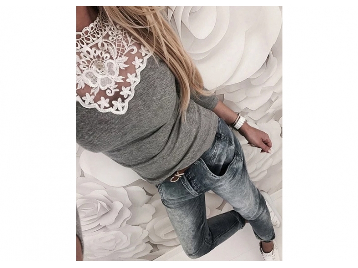 U nežnoj roze i/ili sivoj boji izgledaćete vrlo ženstveno. Suptilna lepa majica sa čipkanim belim detaljima stajaće vam kao salivena. Idealna je svakodnevne prilike, za odlazak u školu, na posao, na piće sa prijateljima.