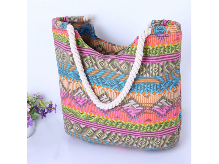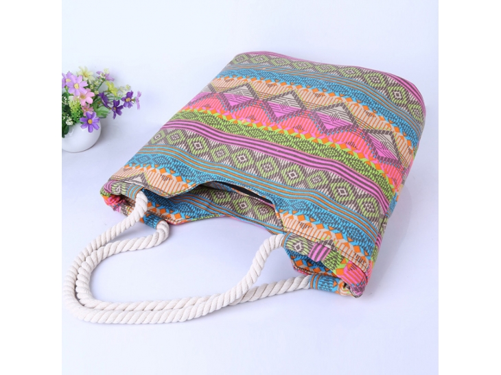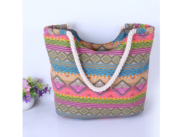 Šarena torba je za sve one samouverene devojke koje vole da se poigravaju bojama, koje imaju smelosti da kombinuju ono što drugi nemaju hrabrosti i koje to savršeno dobro znaju da iznesu. Ona na sebi ima prugaste šare u raznim bojama od kojih najviše dominira roze boja koja je ovoga leta potpuni hit u modnom svetu.