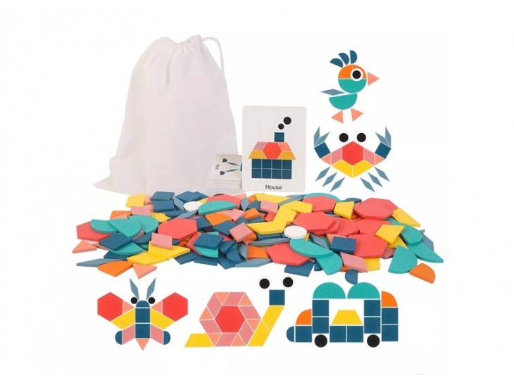 Svaki komadić je drven i zaobljen, bez oštrih ivica, tako da dete ne može da se povredi, raseče, ogrebe. Delići su obojeni veselim i za zdravlje sigurnim bojama.