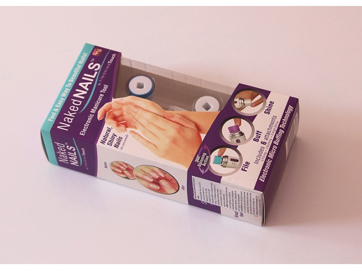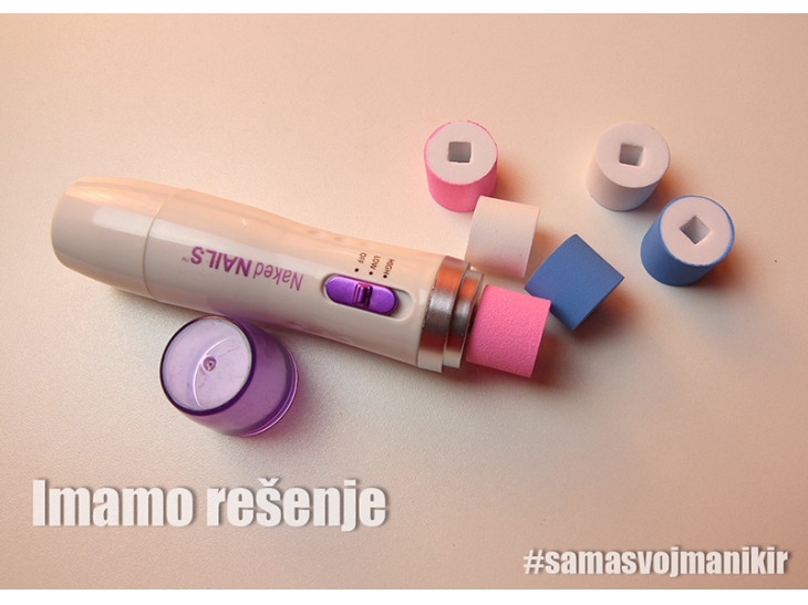 Pa, drage naše, do čistih, ispoliranih i sjajnih prirodnih noktiju nikad nije bilo lakše doći! Predstavljamo Vam proizvod u koji ćete se zaljubiti već nakon prvog korišćenja – manikir set Naked Nails, proizvod čije će Vas performanse jednostavno zadiviti! Za korišćenje Naked Nails manikir seta vam nisu potrebni nikakvi kursevi niti specijalna uputstva, jer je izuzetno jednostavan za korišćenje. Set ima 3x2 dodatka: 2 za turpijanje + 2 za poliranje + 2 za visoki sjaj, a na aparatu koji ih pokreće moguće je izabrati dve brzine.