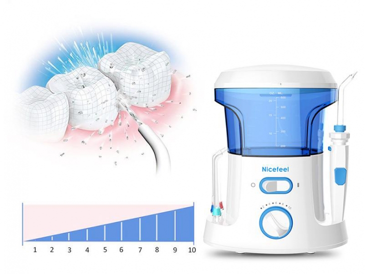 Tuš za zube i desni ima mogućnost podešavanja pritiska (30-125 PSI) odnosno intenziteta mlaza. Frekvencija pulsiranja mlaza tečnosti je do 1.700 pls/min, a u rezervoar može da stane i do 600 ml vode.